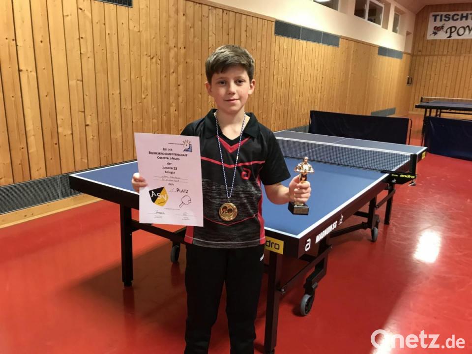 Souverän dominierte Leon Neubauer vom SC Eschenbach auch an diesem Tag die Bezirks-Einzelmeisterschaft der U13 unter 16 Teilnehmern. Mit 5:0 holte er sich den Bezirks-Einzelmeistertitel vor Ludwig Burger (TTC Waldershof).