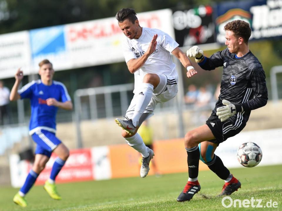 Bereits von Beginn an entwickelte sich eine offensiv geführte Partie mit Möglichkeiten auf beiden Seiten. Die erste Chance hatte die Heimelf bereits nach fünf Minuten, als Hudec den linken Pfosten anvisierte. In der Folgezeit kam der SV Etzenricht zu mehreren guten Möglichkeiten, doch sowohl Pasieka als auch Danzer scheiterten an SpVgg-SV-Schlussmann Heisig. In der 20. Minute gelang den Gästen der Führungstreffer. Felix Diermeier setzte zum Sprint an und konnte von der Defensive der Heimelf nicht mehr aufgehalten werden. Sein flacher Schuss ins lange Eck war auch für Heisig nicht mehr zu erreichen.