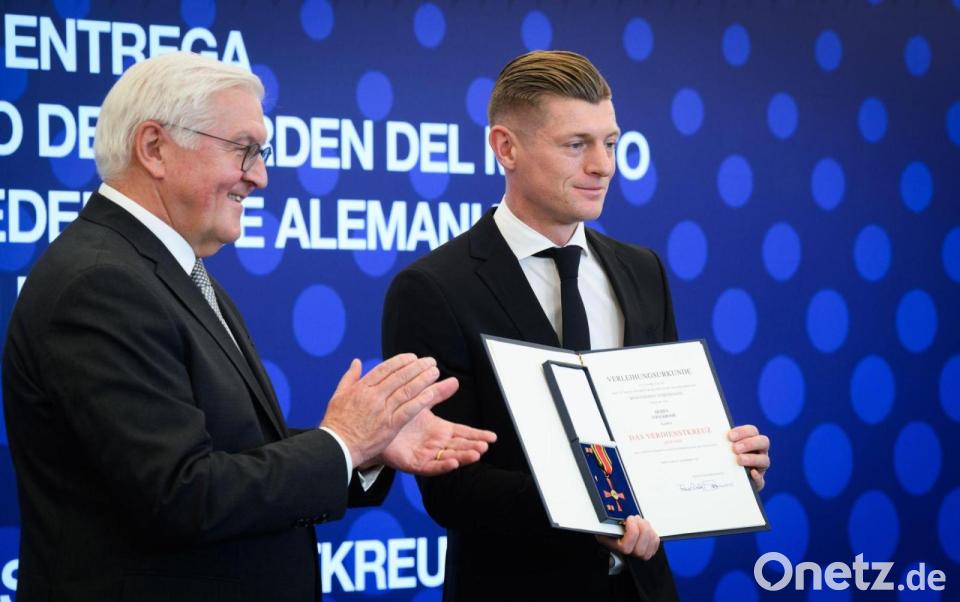 Bundespräsident Frank-Walter Steinmeier hat Fußball-Weltmeister Toni Kroos das Bundesverdienstkreuz verliehen. Er überreichte die Auszeichnung dem ehemaligen Spieler von Bayern München und Real Madrid an seiner einstigen Wirkungsstätte, dem Bernabéu-Stadion in der spanischen Hauptstadt. „Als Mittelfeldspieler waren Sie das Herz Ihrer Mannschaft, bis heute sind Sie ein Spielmacher der deutsch-spanischen Freundschaft“, sagte Steinmeier bei der Ordensverleihung.
