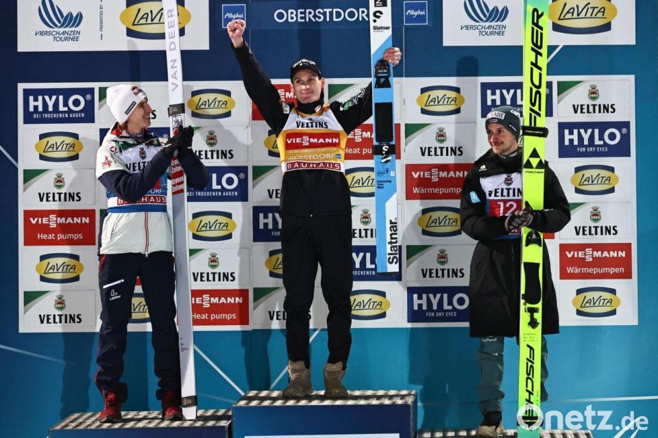 Hoffmann erlebte in Oberstdorf eine emotionale Podestpremiere bei der Tournee. Der 28-Jährige hatte schon an diversen Mikrofonen über seinen vierten Platz gesprochen, ehe er von der Disqualifikation des Slowenen Timi Zajc erfuhr und doch noch auf Rang drei vorrückte.