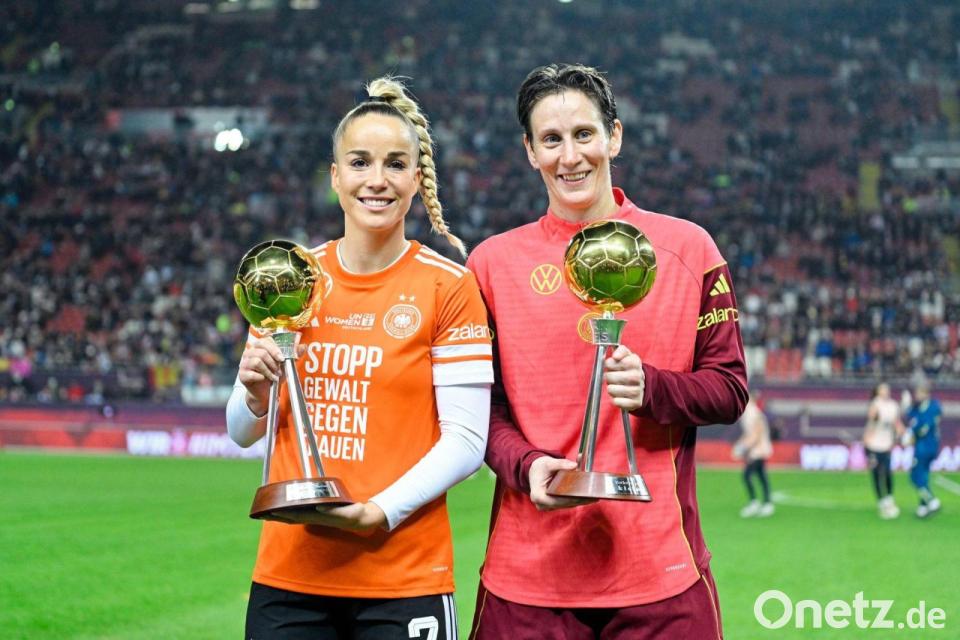 Berger, die vor der Partie zusammen mit DFB-Kapitänin Giulia Gwinn als „Fußballerin des Jahres“ ausgezeichnet wurde, war quasi beschäftigungslos. Für die US-Meisterin vom Club Gotham FC aus New Jersey ein gutes Zeichen: „Ich bin da furchtbar dankbar, dass es auch mal ein ruhiger Abend war.“ Sie habe sich zwar auf mehr Arbeit eingestellt, „aber ich freue mich immer, wenn ich nichts zu tun habe“.