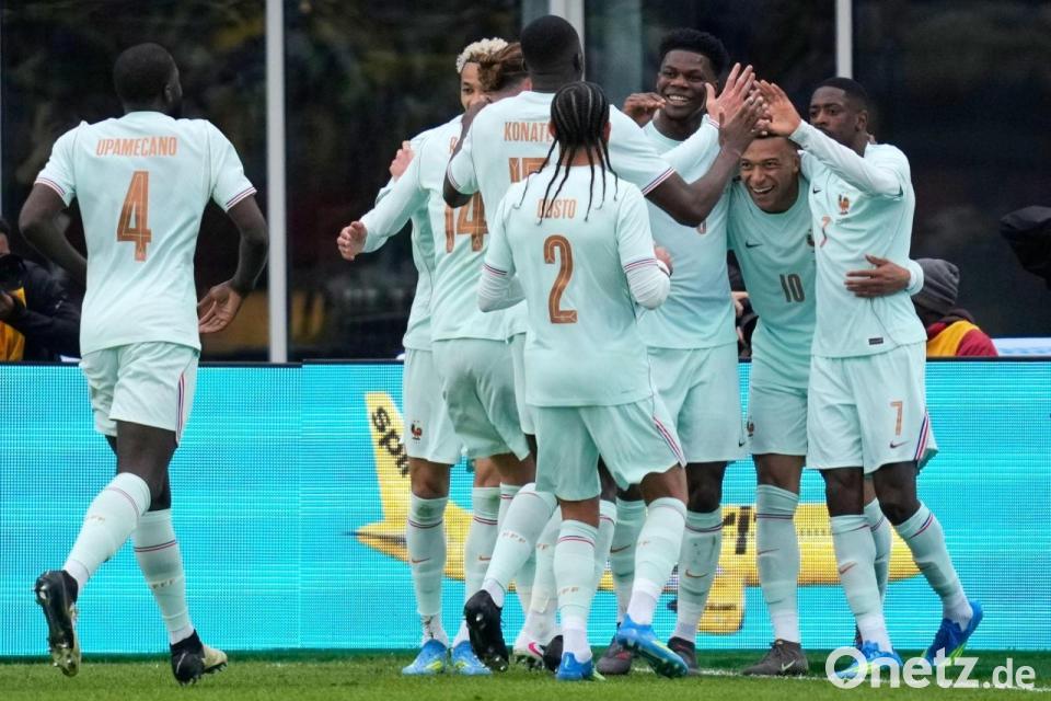 Frankreich hat den Härtetest vor der Fußball-WM gegen Brasilien trotz Unterzahl mit 2:1 gewonnen. Real Madrids Star Kylian Mbappé brachte die Franzosen in der 32. Minute im Gillette Stadium in der US-Stadt Foxborough (Massachusetts) in Führung und traf damit im ersten Länderspiel nach dem Wirbel um seine Knieverletzung.