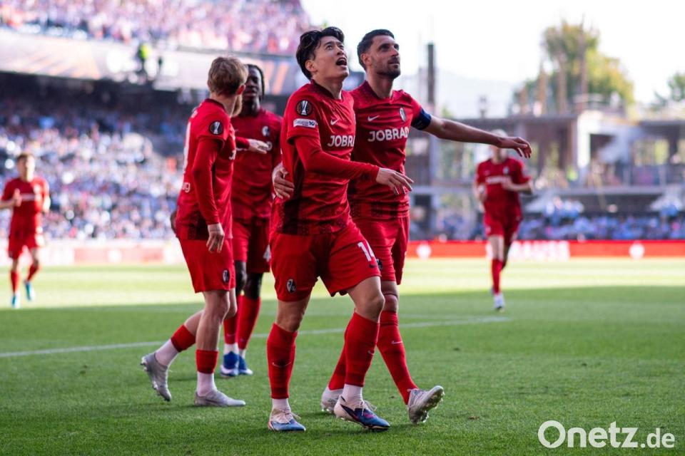 Igor Matanovic (33. Minute) und Yuito Suzuki (39./50.) trafen für die furiosen Freiburger, deren bemerkenswerte Europapokal-Reise weitergeht und womöglich noch bis ins Endspiel am 20. Mai in Istanbul führt. Williot Swedberg konnte in der Nachspielzeit nur noch verkürzen (90.+1). Die erfolgreichste internationale Spielzeit der SC-Historie ist es ohnehin schon. In ein Viertelfinale war der Bundesliga-Achte aus dem Breisgau zuvor noch nie vorgestoßen.