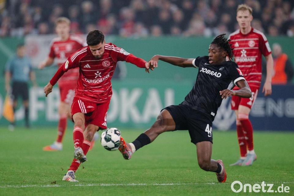 Vor 36.112 Zuschauern in der Düsseldorfer Arena erzielten Igor Matanovic (1.), Vincenzo Grifo (6.) und Derry Scherhant (90.+3) die Treffer für den Pokalfinalisten von 2022. Für Fortuna, die im Vorjahr bereits in der ersten Runde ausgeschieden war, traf Anouar El Azzouzi (20.) im ersten Pokal-Heimspiel seit sechs Jahren.