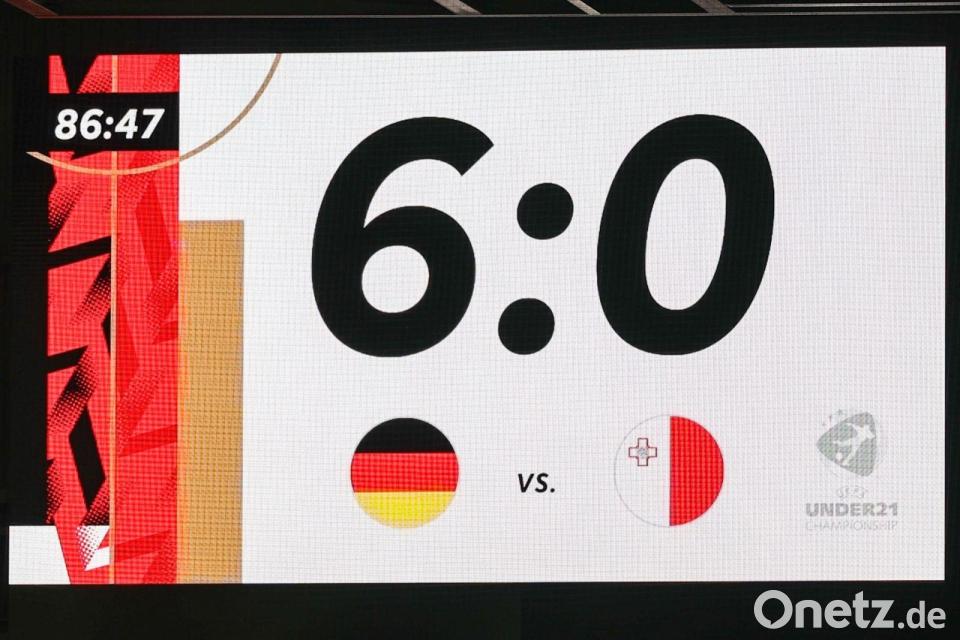 Dreifach-Torschütze Tom Bischof klatschte Doppelpacker Lennart Karl nach dem U21-Torfest freudestrahlend ab. Die Jungstars des FC Bayern München haben der Auswahl des Deutschen Fußball-Bundes in der kniffligen EM-Qualifikation einen befreienden Sieg geschenkt. „Das war nicht nur der Bayern-Block, der es gut gemacht hat, sondern jeder auf dem Platz hat es sehr gut gemacht“, sagte Anführer Bischof, der beim 6:0 gegen Malta die Kapitänsrolle nicht nur wegen seiner drei Tore mustergültig erfüllte.