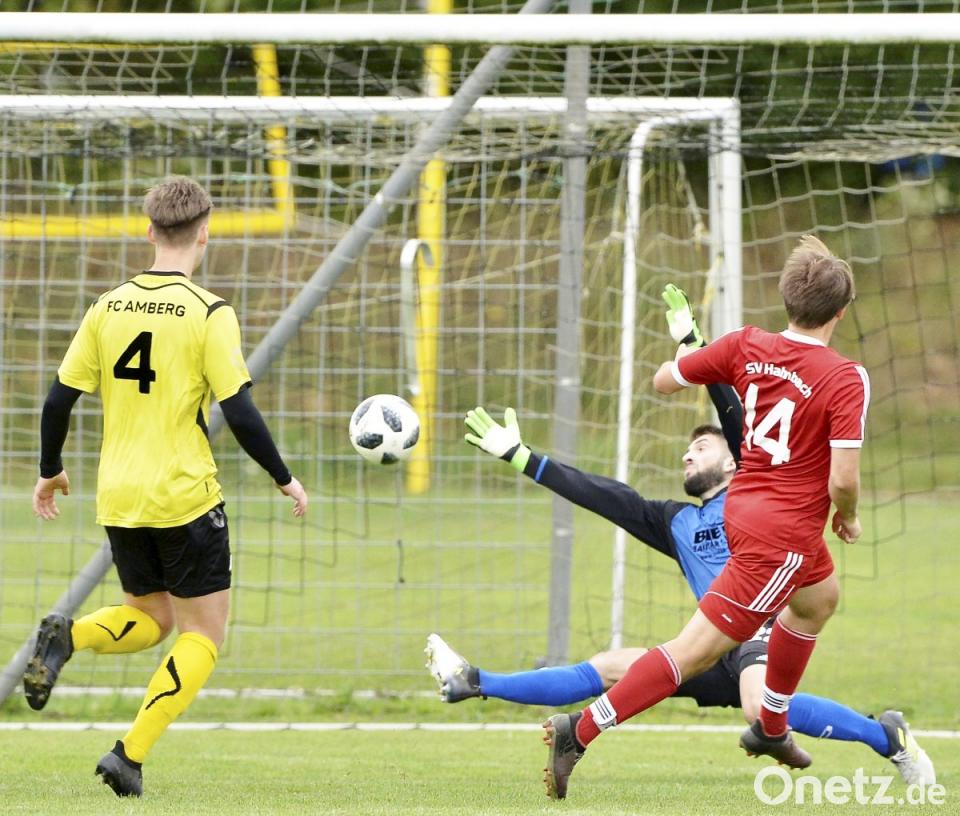 Mit 3:0 gewann der SV Hahnbach sein Heimspiel in der Fußball-Bezirksliga Nord gegen den FC Amberg. Dabei gehörte vor allem die Anfangsphase klar den Gästen. Bereits in der 1. Minute eine dicke Möglichkeit, aber Hahnbachs Torhüter Dietrich konnte gerade noch zur Ecke klären. Im Anschluss daran zielte Matthias Brinster knapp über die Latte. Der Gastgeber tat sich schwer ins Spiel zu kommen. Zu wenig Bewegung und zu viele Fehlpässe bremsten das Hahnbacher Bemühen. Deshalb auch völlig überraschend dann die Führung. Ambergs Abwehr passte das erste Mal nicht auf und Fabian Brewitzer erzielte mit einem Flachschuss das glückliche 1:0 in der 21. Minute. Hahnbach war in dieser Phase sehr effektiv. Nur kurze Zeit später kam Manuel Plach an den Ball und setzte ihn ins lange Eck zum 2:0 (28.). Aber der FC Amberg versuchte es weiter und war vor allem durch Standards immer gefährlich. Die beste Gelegenheit hatte dann Martin Popp, der aus kurzer Distanz am überragend reagierenden Torhüter Benedikt Dietrich scheiterte. Mit einem doch etwas schmeichelhaften 2:0 ging es in die Kabinen.