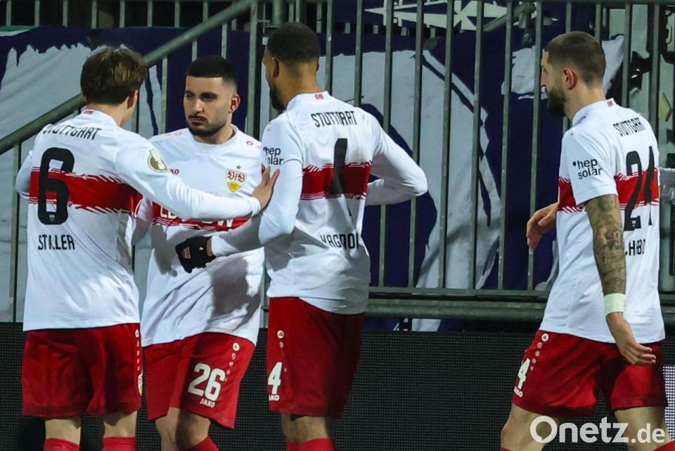 Die Stuttgarter taten sich zunächst etwas schwer, wurden aber trotz der eisigen Bedingungen etwas munterer. Führich und Undav (25.) per Kopf versuchten sich vergeblich am 1:0, ehe die VfB-Führung fast durch eine Unachtsamkeit von Pokaltorwart Timon Weiner entstand, dem eine Flanke durch die Finger flutschte. Doch der Schuss von Bilal El Khannous wurde geblockt.