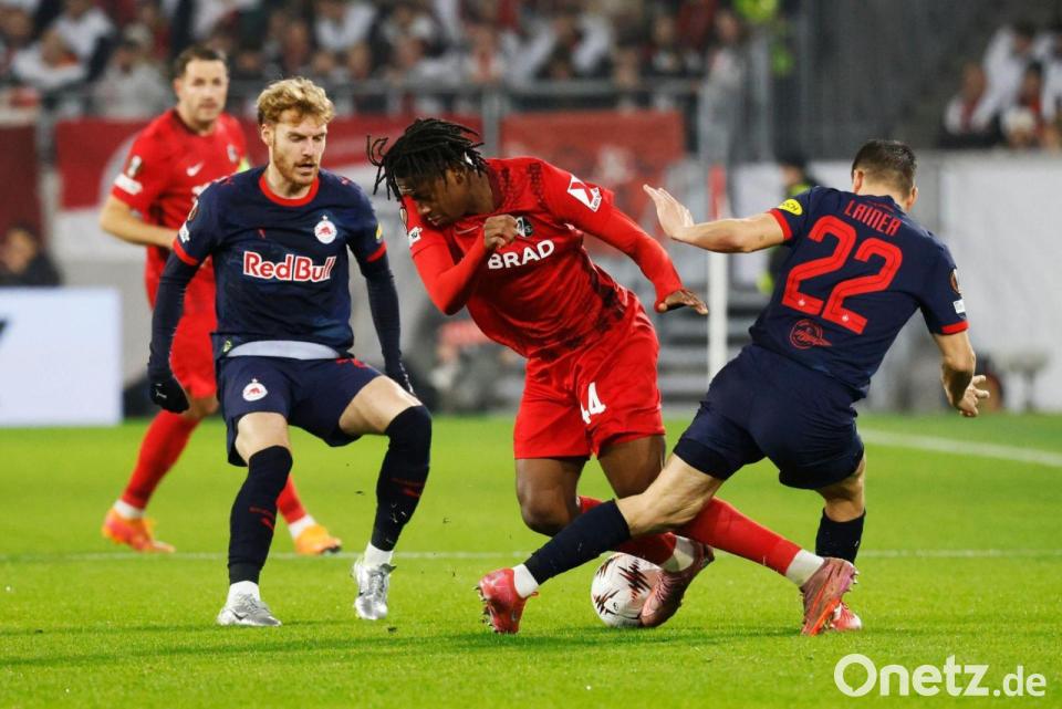 Dritter Sieg im dritten Heimspiel: Der SC Freiburg bleibt in der Europa League im eigenen Stadion eine Macht und hat die Teilnahme an der K.o.-Runde bereits sicher. Der Fußball-Bundesligist gewann gegen RB Salzburg mit 1:0 (0:0) und erhöhte dadurch seine Chancen, sogar direkt ins Achtelfinale einzuziehen. Der 17-malige österreichische Meister indes muss selbst das Erreichen der Playoffs womöglich bald abschreiben.