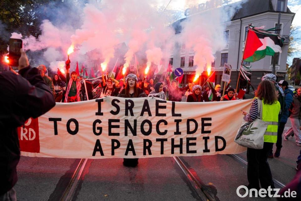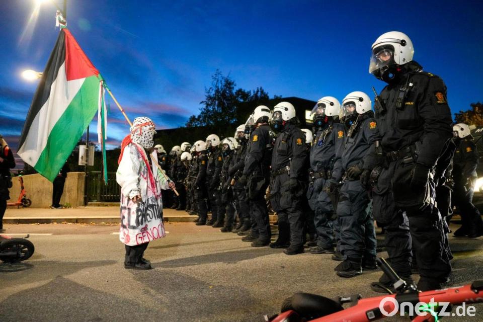 Als die israelische Nationalhymne im Ullevaal-Stadion in Oslo erklang, gab es Pfiffe. Auf den Rängen wurde eine riesige Palästina-Flagge entrollt und ein Plakat mit der Aufschrift: „Let Children Live“ (Lasst Kinder leben) gezeigt. Ein Mann, der ein T-Shirt mit der Aufschrift „Free Gaza“ trug, lief während der Partie auf den Platz und sorgte so für eine Unterbrechung.