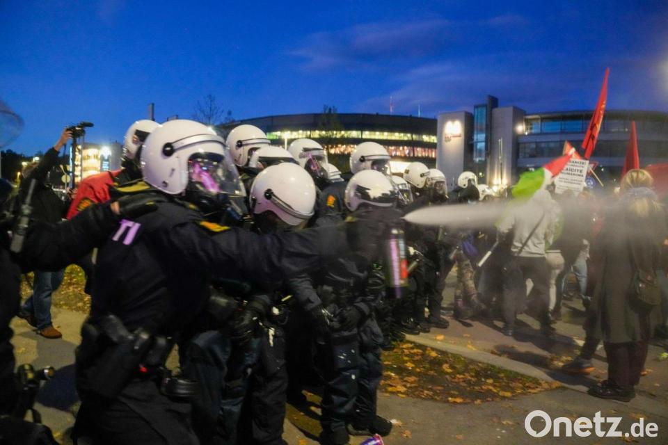 Vor dem Stadion protestierten Menschen zunächst friedlich. Die Stimmung wurde im Laufe des Abends jedoch immer aggressiver. Demonstranten versuchten, Absperrungen zu durchbrechen und warfen Gegenstände auf Polizisten. Diese reagierten mit dem Einsatz von Tränengas. Es gab mehrere Festnahmen. Auch eine israelische Flagge ging in Flammen auf.