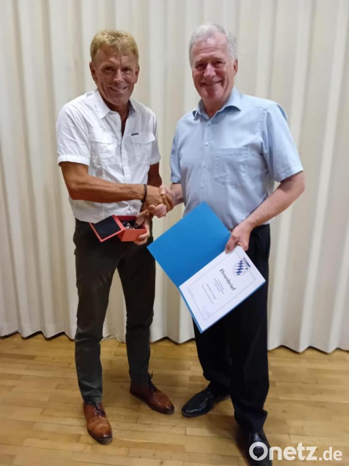 Er gehört schon fast zum Landschaftsbild in und um Hirschau, Ehenfeld, Schnaittenbach oder Freudenberg. Er schiebt und schiebt und rollt durch die Natur. Auch mit 57 Jahren ist Bernhard Langer noch nahezu täglich mit seinen Skirollern unterwegs. "Meistens sind es so zwei Stunden am Tag", erzählt der Skilangläufer aus Hirschau. 1978 hatte Langer beim SC Monte Kaolino mit dem Skilanglauf begonnen, auch heute ist er noch mit der gleichen Begeisterung dabei. Wegen seiner Leistungen und weil er auch Vorbild für Kinder ist, wurde Langer jetzt vom Bayerischen Skiverband ausgezeichnet. Bei einer Feierstunde in Schwarzenfeld erhielt er vom Präsidenten des Oberpfälzer Skiverbandes, Anton Bauernfeind, den "Gläsernen Quader" samt Ehrenbrief des Verbandes. Der wird normalerweise nur an Athleten, die an Weltmeisterschaften oder Olympischen Spielen teilgenommen haben, verliehen.