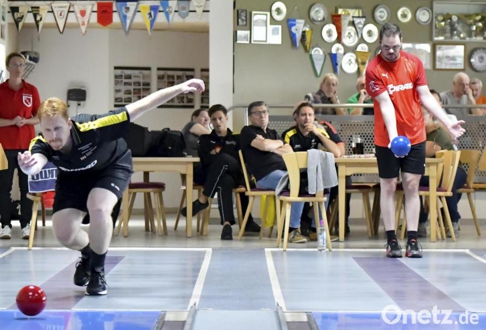 Vom Start weg entwickelten sich enge Duelle im Nachbarduell zwischen Rot-Weiss Hirschau und FEB Amberg. Michael Oettl lief trotz eines guten Starts einem Rückstand hinterher, da sein Amberger Kontrahent Milan Wagner im ersten Satz Kegeln vom Feinsten zeigte (189 Holz). Nach zwei souveränen Satz-Siegen brachte der Hirschauer den Punkt auf der letzten Bahn gekonnt nach Hause und gewann den Mannschaftspunkt bei Satzgleichheit mit 627:619 Kegel.