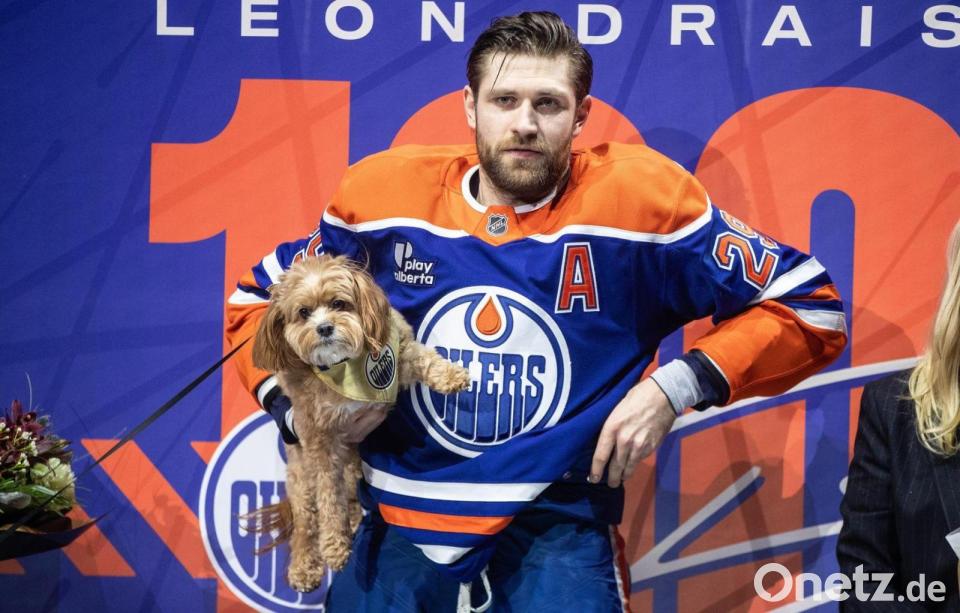 Leon Draisaitl ist von den Edmonton Oilers für seine 1000 Scorerpunkte in der NHL im Beisein seiner Familie geehrt worden. Neben seiner Frau Celeste und seinem Hund Bowie standen auch Mutter Sandra und Vater Peter Draisaitl auf dem Eis im Rogers Place in Edmonton, als die Oilers ihren deutschen Star-Angreifer vor der Partie gegen die Los Angeles Kings für den Meilenstein würdigten. Draisaitl hatte die Schallmauer von 1.000 Scorerpunkten im Dezember als erster deutscher Eishockey-Profi in der NHL durchbrochen.