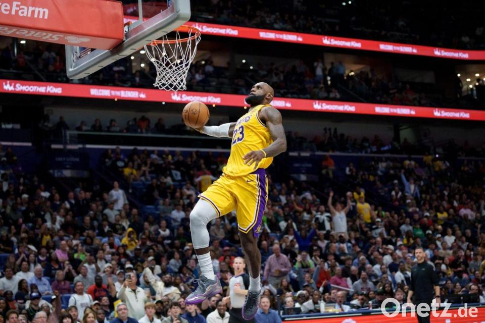 Die Stars LeBron James und Luka Doncic haben die Los Angeles Lakers in der NBA zu einem knappen Auswärtssieg bei den New Orleans Pelicans geführt. Beim 111:103 verbuchten die beiden Basketball-Profis jeweils 30 Zähler. Es war der vierte Sieg der Lakers in den vergangenen fünf Partien. Auch DeAndre Ayton hatte mit 18 Punkten und 11 Rebounds ein gutes Spiel. Maxi Kleber und Bronny James, der Sohn von LeBron James, kamen nicht zum Einsatz gegen die Pelicans, die nun acht Partien in Serie verloren haben.