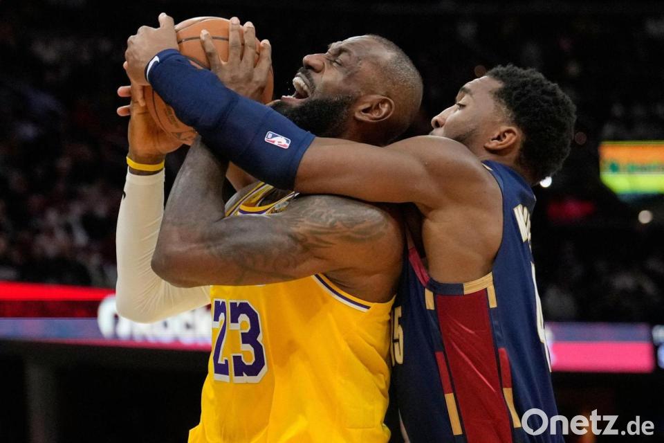 Zum Sieg führen konnte James sein Team beim womöglich letzten Gastspiel in Cleveland nicht. Die Lakers verloren 99:129, James kam auf elf Punkte. Luka Doncic verbuchte 29 Zähler und war damit der beste Punktesammler der Partie, Donvoan Mitchell konnte dank seiner 25 Punkte aber am Ende über einen Cavaliers-Sieg jubeln. James hat offen gelassen, ob er seine Karriere über diese Saison hinaus fortsetzt. In Cleveland wurden er und sein Sohn Bronny James, der auf acht Punkte kam für die Lakers, von Fans beider Teams gefeiert.