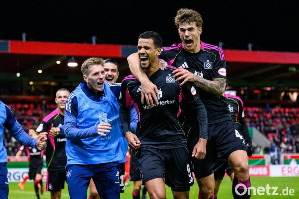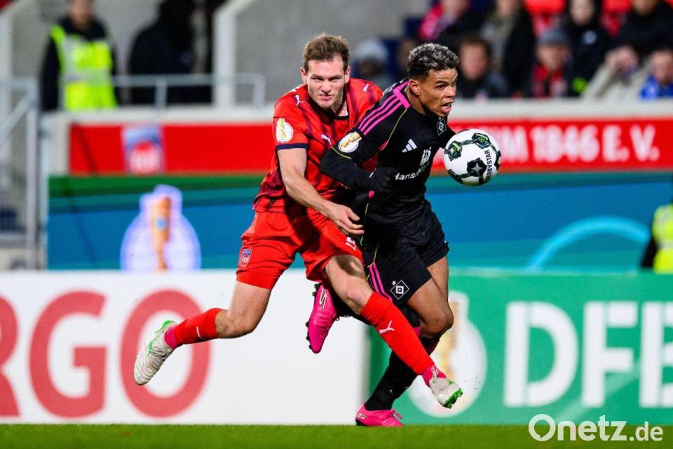 Die Hamburger erwischten die bessere Anfangsphase. Doch das mit dem Toreschießen war wie schon zuletzt beim 0:1 in der Liga gegen den VfL Wolfsburg zunächst ein Problem. In den ersten Minuten ließen die Gäste gleich zwei gute Chancen aus: Kapitän Miro Muheim schoss den ausgerutschten Heidenheimer Omar Traoré an (3.), Ransford-Yeboah Königsdörffer scheiterte mit einem Schuss aufs kurze Eck am aufmerksamen Torwart Diant Ramaj (7.).