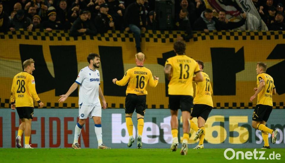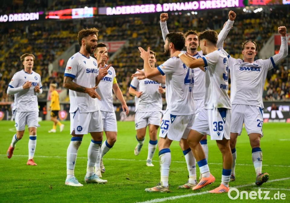 Der Karlsruher SC hat den ersten Auswärtssieg in der 2. Fußball-Bundesliga in der Nachspielzeit noch liegen gelassen. Der KSC kam bei Dynamo Dresden nur zu einem 3:3 (2:1) und bleibt in der Tabelle auf Rang sieben. Nils Fröling brachte Dynamo (8. Minute) in Führung. Marcel Beifus (11.) sorgte mit dem ersten Auswärtstreffer in dieser Saison für den Ausgleich, ehe Lilian Egloff (37.) die Partie drehte. Zwar konnte Christoph Daferner (52.) wieder ausgleichen, doch Fabian Schleusener (61.) brachte den KSC wieder in Führung, ehe Dynamo durch Jakob Lemmer(90.+2) den Ausgleich bejubelte.