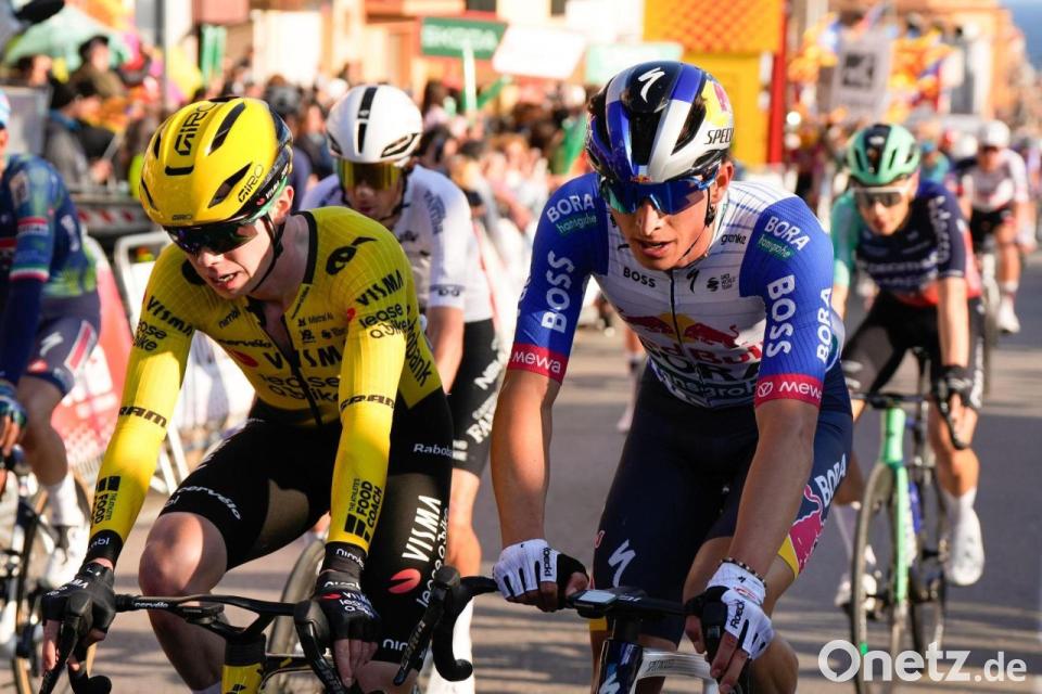 99 Tage vor dem Start der Tour de France hat sich Florian Lipowitz in starker Frühform gezeigt und das interne Red-Bull-Duell mit Doppel-Olympiasieger Remco Evenepoel bei der Katalonien-Rundfahrt klar für sich entschieden. Die deutsche Radsport-Hoffnung belegte bei der Bergankunft auf dem Coll de Pal den vierten Platz. Eine Klasse für sich war erneut der zweimalige Tourchampion Jonas Vingegaard. Der Däne, der jüngst schon die Rundfahrt Paris-Nizza gewonnen hatte, siegte mit deutlichem Vorsprung.