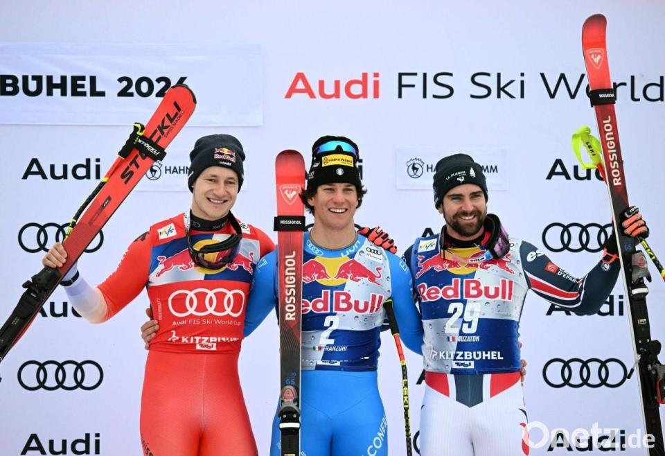 „Das liegt nicht in meinen Händen“, sagte Vogt selbst zur Bredouille. Der Zwei-Meter-Rennfahrer, der sich mit Schuhgröße 50 in Skistiefel der Größe 47 zwängte, hatte mit einer beherzten Fahrt sogar Sieger Giovanni Franzoni (Italien) und Superstar Marco Odermatt (Schweiz) auf Rang zwei bangen lassen. „Saugeil“, fand Vogt, den Verletzungen in den vergangenen Jahren immer wieder gebremst hatten. Das Grinsen wich ihm im Zielraum von Kitzbühel nicht aus dem Gesicht; Fans und Freunde mit Plakaten jubelten dem Oberbayern zu.