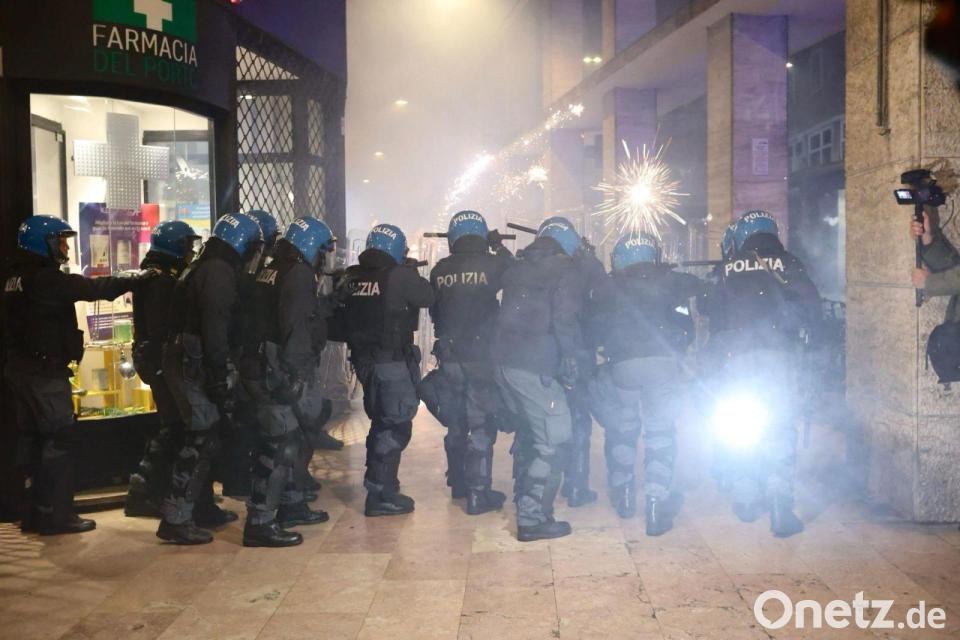 Wie italienische Medien berichteten, zogen die Demonstranten zunächst durch die Innenstadt. Im Laufe des Abends setzten sich jedoch mehrere Gruppen vom Hauptzug ab. Sie bewarfen demnach die Polizisten mit Feuerwerkskörpern, später errichteten sie Barrikaden, setzten Müllcontainer in Brand und zerstörten eine Baustelle. Die Polizei setzte daraufhin Tränengas sowie Wasserwerfer ein. Offizielle Angaben zu verletzten Demonstranten gab es zunächst nicht.