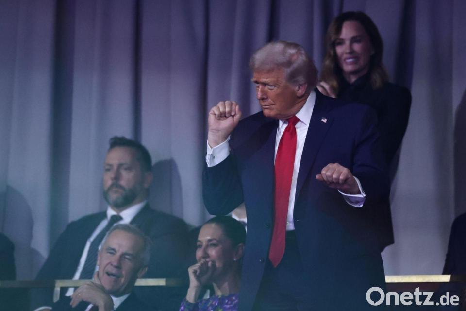 Trump hängte sich selbst die goldene Medaille um den Hals. „Das ist eine der größten Ehrungen meines Lebens“, sagte er. Später war er gemeinsam mit Kanadas Premierminister Mark Carney und Mexikos Präsidentin Claudia Sheinbaum noch einmal auf der Bühne und zog die Lose der Gastgeber.