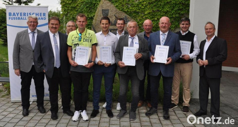 Sechs langjährige und verdiente Mitarbeiter hat der Bayerische Fußball-Verband im Bezirk Oberpfalz im Kümmersbrucker Rathaus ausgezeichnet. BFV-Bezirksvorsitzender Thomas Graml sah diese Ehrungen als „Zeichen der Wertschätzung für all das Herzblut und die viele Zeit“, die die Geehrten in den Fußballsport investieren.