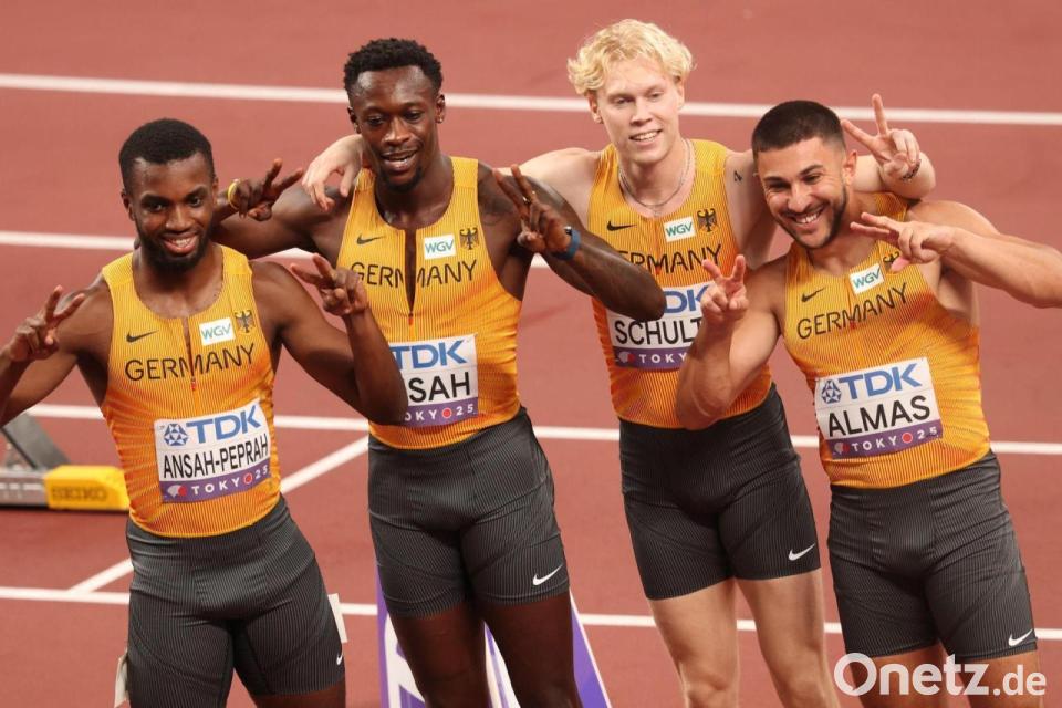 Die Männer-Staffel mit Deniz Almas, Marvin Schulte, Owen Ansah und Lucas Ansah-Peprah zog als sechstbeste in 38,12 Sekunden ebenfalls in den Endlauf am Sonntag (14.20 Uhr) ein. Nach einem vollkommen verpatzten letzten Wechsel kam die favorisierte jamaikanische Staffel mit 100-Meter-Weltmeister Oblique Seville nicht ins Ziel und schied überraschend aus. Genauso erging es auch Großbritannien.