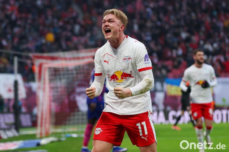 Harder (28.) hatte nach fast einer halben Stunde den ersten Leipziger Abschluss, sein Kopfball war jedoch zu harmlos. Dann gewann die Partie an Fahrt - und Aufregung. Zunächst köpfte Harder nach Flanke von Antonio Nusa die Leipziger in Führung. Tief in der Nachspielzeit der ersten Halbzeit ging Phillip Tietz nach einem Zweikampf mit David Raum im Strafraum zu Fall.