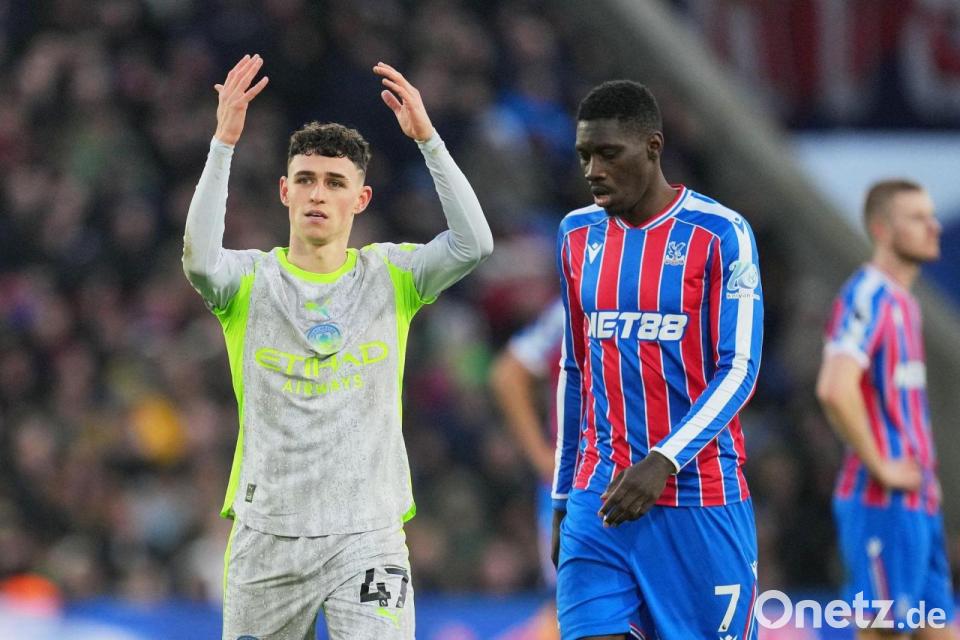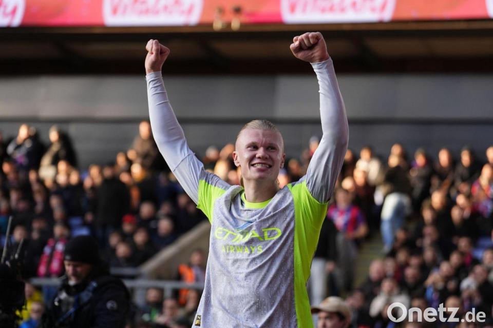 Manchester City bleibt dem englischen Fußball-Tabellenführer FC Arsenal in der Premier League dicht auf den Fersen. Das Team von Trainer Pep Guardiola setzte sich dank Doppeltorschütze Erling Haaland und Phil Foden mit 3:0 (1:0) bei Crystal Palace durch.