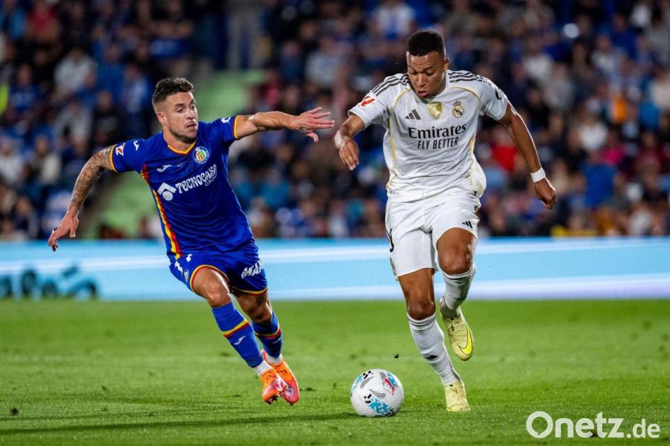 Dank Super-Torjäger Kylian Mbappé geht Real Madrid als Tabellenführer in den nächsten Clásico gegen den FC Barcelona. Vor dem Ligaduell der beiden spanischen Top-Teams am kommenden Sonntag behaupteten die Königlichen mit einem 1:0 (0:0)-Arbeitssieg beim FC Getafe die Spitzenposition. Das entscheidende Tor zum Erfolg beim Madrider Vorstadtclub erzielte der Franzose Mbappé in der 80. Minute auf Vorlage von Arda Güler.