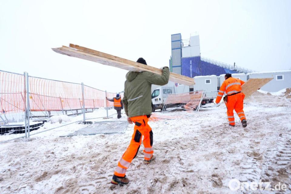 Handwerker kurz vor Beginn noch zugange