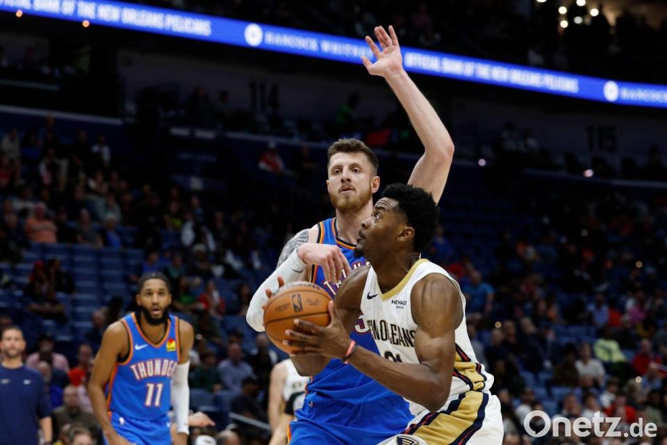 Die Oklahoma City Thunder haben auch die New Orleans Pelicans geschlagen und bereits den 14. Sieg im 15. Spiel der NBA-Saison geholt. Angeführt von Shai Gilgeous-Alexander, Chet Holmgren und dem Deutschen Isaiah Hartenstein gewann der Titelverteidiger 126:109 gegen die Gäste aus Louisiana. Holmgren verbuchte 26 Punkte, Gilgeous-Alexander kam auf 23 und Hartenstein auf 16 Punkte. Durch die 127:130-Niederlage der Denver Nuggets gegen die Chicago Bulls vergrößerten die Oklahoma City Thunder ihren Vorsprung an der Spitze der Western Conference.
