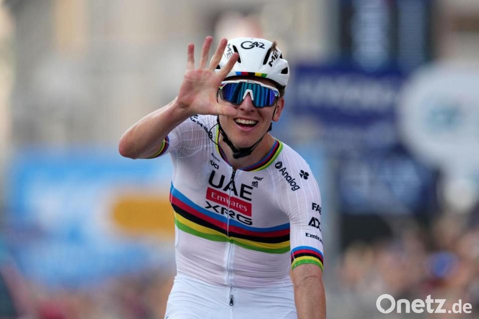 Sind die Rennen vom Parcours her schwerer, fährt Pogacar ohnehin in seiner eigenen Liga. Fast schon mit Ansage attackierte der Dominator am Passo di Ganda 36 Kilometer vor dem Ziel und sprengte die Favoritengruppe. Das Außergewöhnliche ist bei Pogacar längst zur Normalität geworden.
