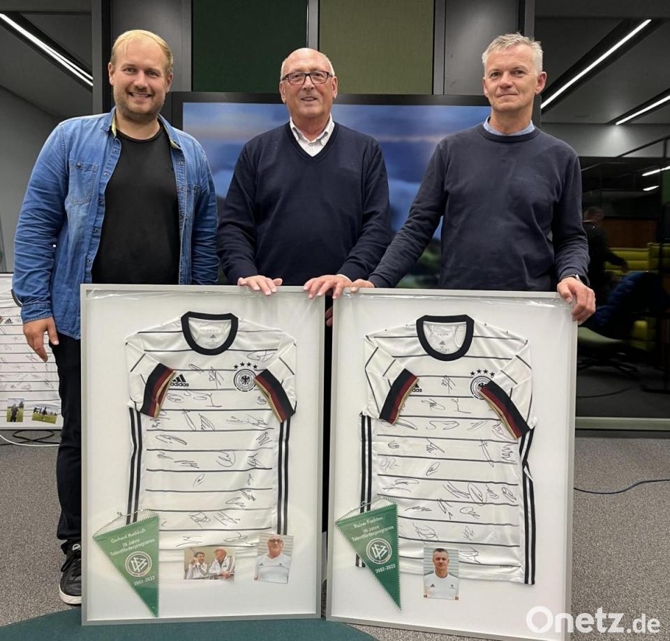 Rainer Fachtan (Waldershof/Poppenreuth) und Gerhard Nothhaft (Marktredwitz) haben eine besondere Auszeichnung erfahren. Die beiden Trainer wurden in Frankfurt vom Deutschen Fußball-Bund für ihre Arbeit im Talentförderprogramm geehrt. Die beiden Honorartrainer des DFB-Stützpunktes Waldershof-Poppenreuth feiern ein 20-jähriges "Dienstjubiläum".