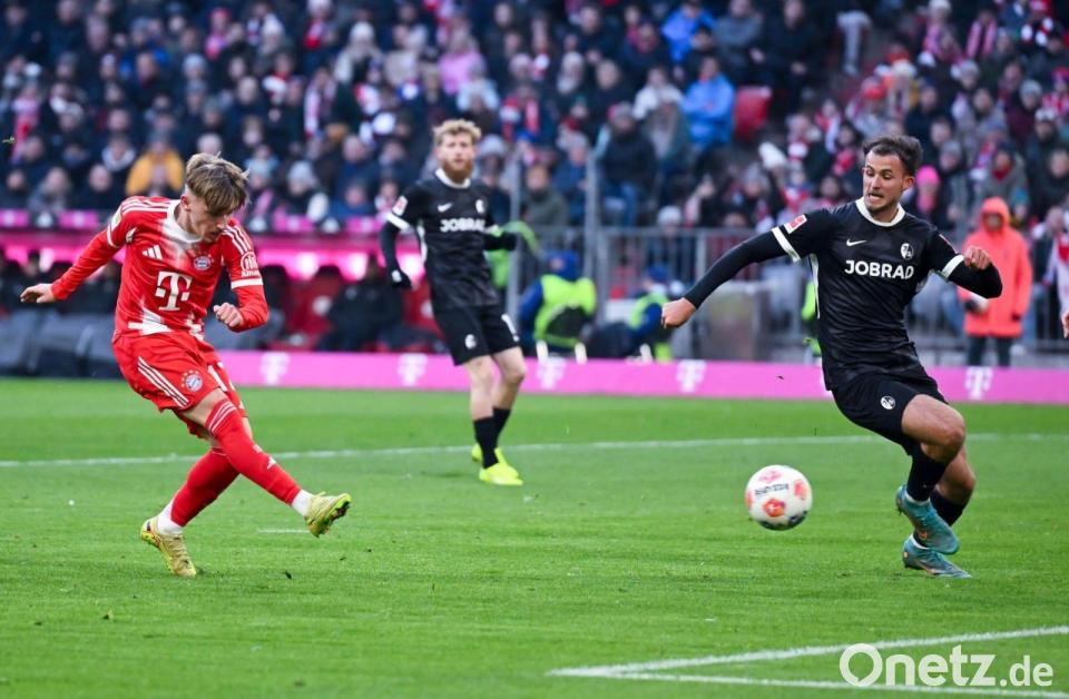 Doch der Weg von Lennart Karl aus Frammersbach in Unterfranken geht gerade ganz steil nach oben. 17 Jahre, wunderbar. Die Gegenwart entwickelt sich zur Verheißung für die Zukunft. Das Freiburg-Spiel war der nächste Beleg. Eine Eins mit Sternchen verdiente sich zwar der zweifache Torschütze Olise, der neben seinem 2:2 und 6:2 gleich an drei weiteren Bayern-Toren beteiligt war.