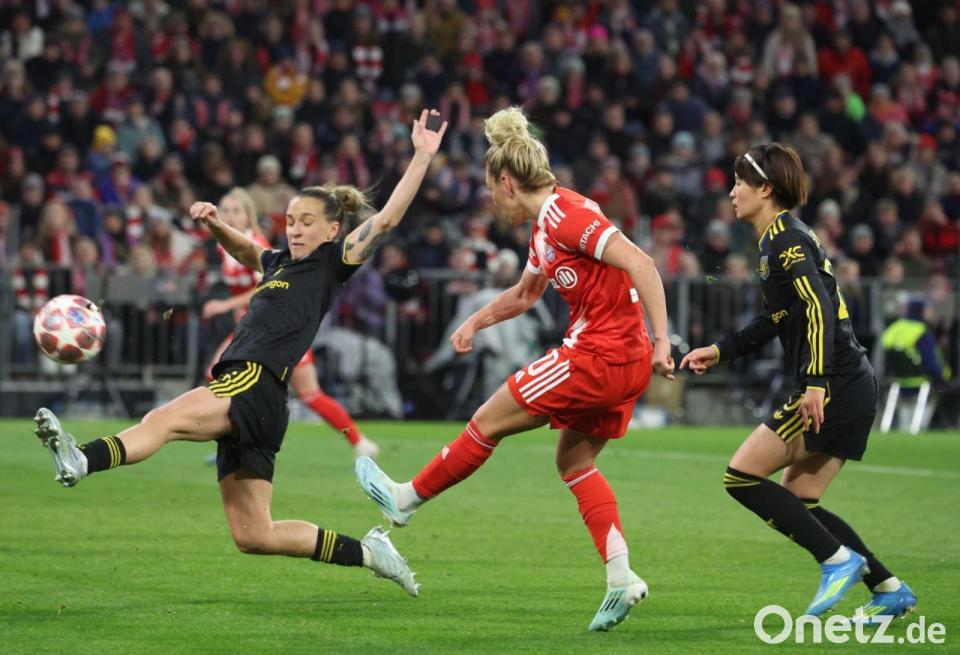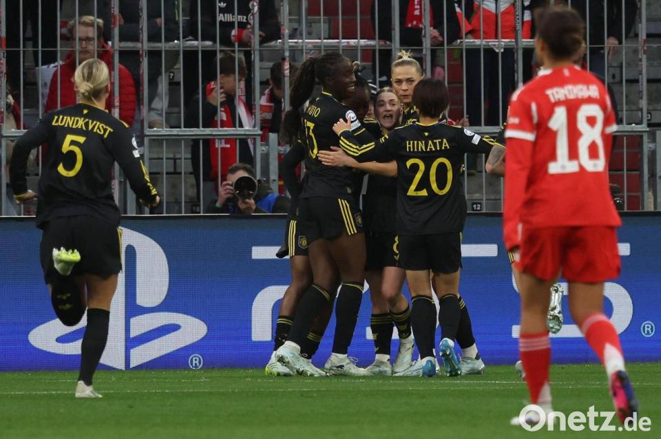 Die französische Stürmerin Melvine Malard nutzte in der elften Minute einen Fehler der Münchner Torhüterin Mahmutovic zur Führung. Kapitänin Glódís Viggósdóttir (81.) sorgte nach einer Ecke von Carolin Simon mit dem Kopf für den Ausgleich. Linda Dallmann (84.) machte vor 25.000 Zuschauern kurz danach alles klar. Im Halbfinale treffen die Münchnerinnen höchstwahrscheinlich auf den FC Barcelona, der sein Hinspiel gegen Real Madrid mit 6:2 gewonnen hat und am Donnerstag weiterkommen will.