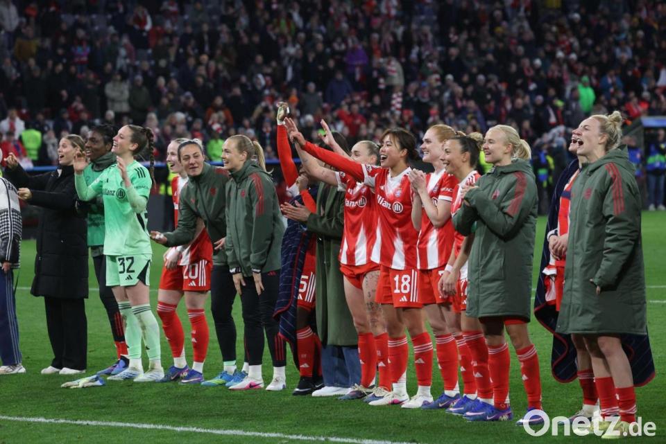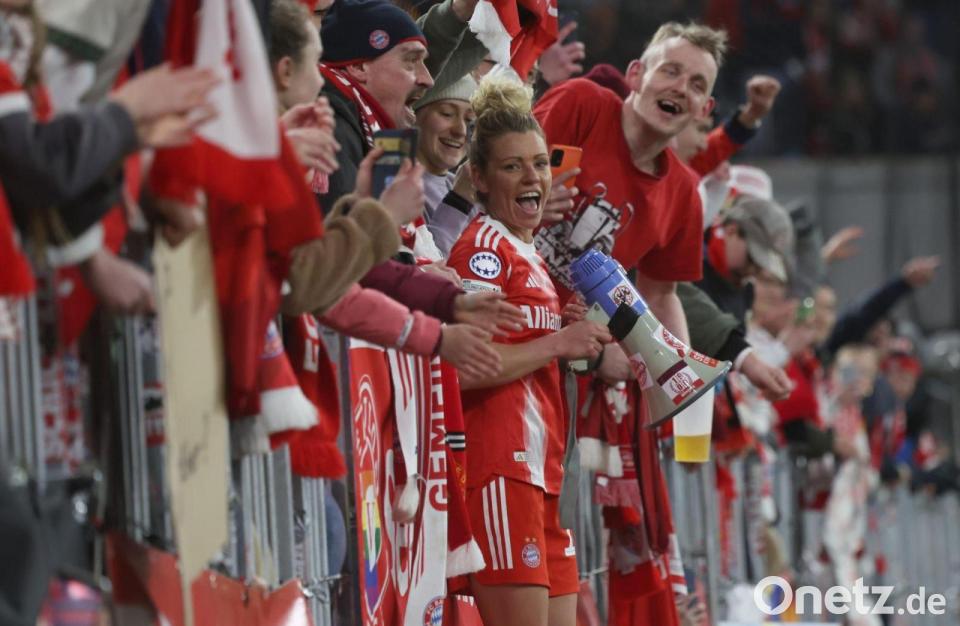Nach der kleinen Sternstunde für die Fußballerinnen des FC Bayern in der Champions League schnappte sich Nationalspielerin Linda Dallmann ein Megafon und heizte in der Münchner Fankurve ausgelassen den eigenen Anhang an. Der deutsche Doublesieger zog vor der Vereinsrekordkulisse von 25.000 Zuschauern in der Königinnenklasse erstmals seit fünf Jahren wieder ins Halbfinale des Wettbewerbs ein und genoss diesen besonderen Moment dahoam.
