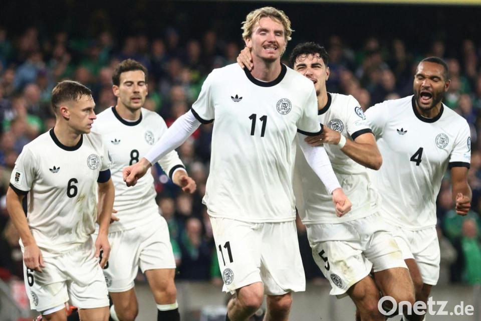 Joshua Kimmich brüllte seine Freude heraus, dann klatschten sich der DFB-Kapitän und die Kollegen nach der Schwerstarbeit im Windsor Park überglücklich ab. Jetzt ist das WM-Ticket ganz nah: Sturm-Riese Nick Woltemade hat den viermaligen Fußball-Weltmeister Deutschland mit seinem Premieren-Tor gegen rustikale Nordiren zum eminent wichtigen 1:0 (1:0) in Belfast geführt. Nach dem Arbeitssieg geht Bundestrainer Julian Nagelsmann mit der DFB-Auswahl im November als Tabellenerster der Gruppe A in die finalen Qualifikations-Partien in Luxemburg und in Leipzig gegen die Slowakei.