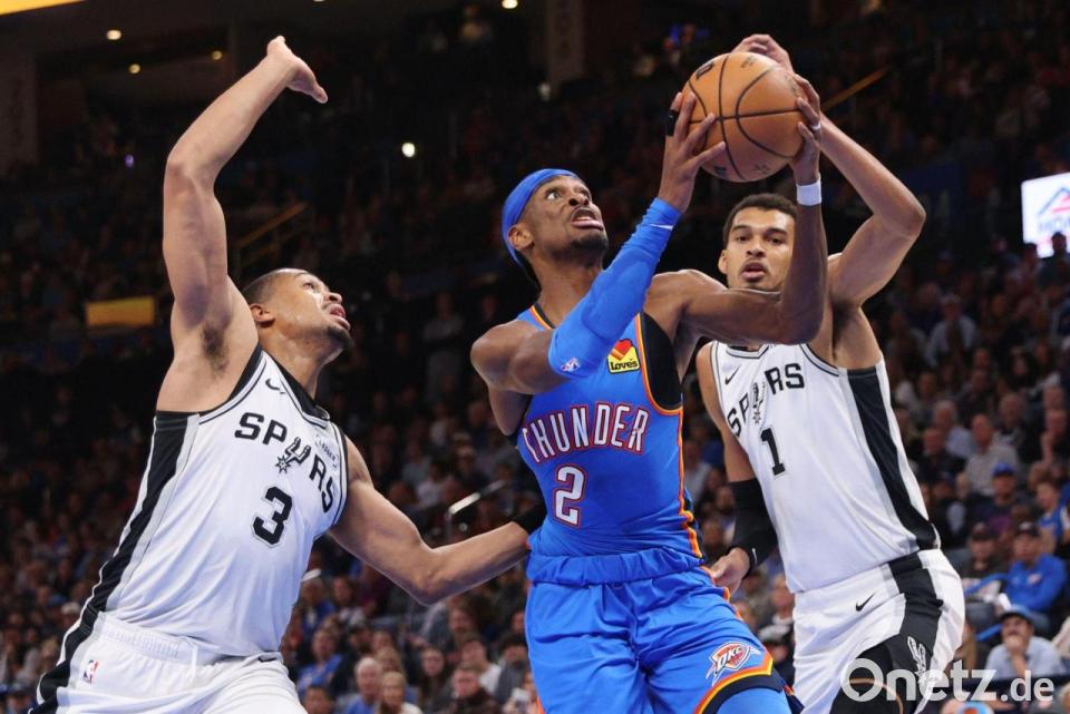 Basketball-Superstar Shai Gilgeous-Alexander hat den NBA-Meister Oklahoma City Thunder zu einem klaren 119:98-Sieg gegen den Angstgegner San Antonio Spurs geführt. Der 27-jährige Kanadier erzielte 34 Punkte im Top-Duell der nordamerikanischen Profiliga gegen das Team aus Texas. Spurs-Star Victor Wembanyama dagegen kam nur auf 17 Zähler.