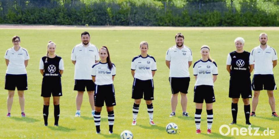 Mit sechs Neuzugängen gehen die beiden Frauenfußball-Teams des SV Neusorg in die Saison. Von links: Anna Friedrich (Co-Trainerin), Julia Küffner, Patrick Bauer (Co-Trainer), Laurina Osmani, Stephanie Schneck, Tobias Prechtl (Trainer 2. Mannschaft), Janina Sebald, Nadine Scharnagl, Christian König (Trainer 1. Mannschaft). Es fehlt Cordula Böhme.