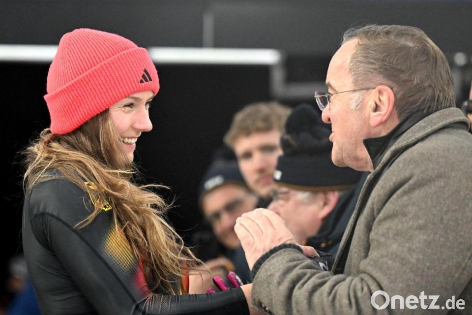 Das sollte diesmal nicht passieren. Die Sportsoldatinnen Nolte und Buckwitz bekamen viel Zuspruch von Bundesverteidigungsminister Boris Pistorius (SPD), der trotz der angespannten Weltlage am Freitag an der Eisbahn war. „Es ist sehr spannend und großartig, dass drei deutsche Bobs vorne liegen. Ein Großteil der Medaillen wird ja von Bundeswehr-Soldaten und -Soldatinnen geholt. Da gehört es sich doch, dass man da auch vorbeischaut“, sagte Pistorius, der live miterlebte, wie sich Nolte und Buckwitz im zweiten Lauf an Armbruster Humphries vorbeischoben.