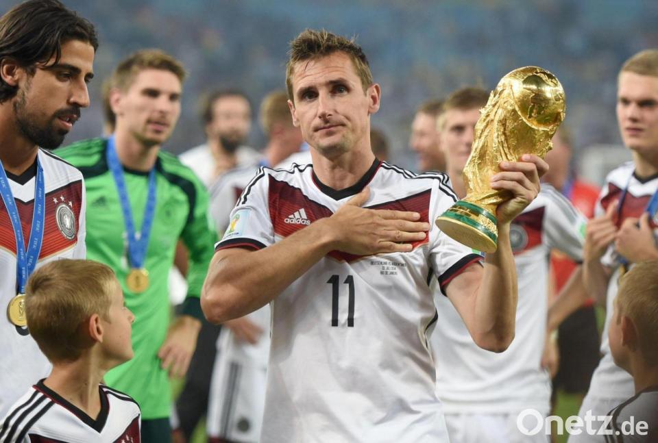 „Noch, so glaube ich, habe ich die meisten Siege bei einer WM und bin der einzige Spieler, der vier Halbfinals gespielt hat“, sagte Klose, der aktuell Trainer bei Fußball-Zweitligist 1. FC Nürnberg ist. „Das sind dann noch ein paar Dinge, die mir geblieben sind.“