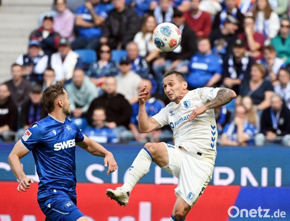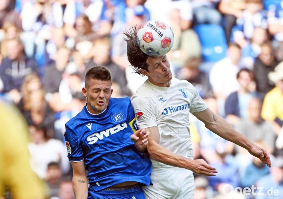 Doch weder Max Geschwill (65.) noch Laurin Ulrich (71.) und Dariusz Stalmach (79.) brachten den Ball im Tor unter. Dann war es Kobald, der nach einem Freistoß von Karlsruhes Kapitän Marvin Wanitzek auf der anderen Seite den Ball zum Heimsieg einköpfte.