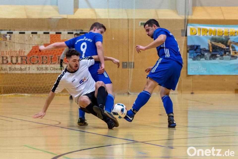 Obwohl die erste Mannschaft der SpVgg Pfreimd nahezu zeitgleich bei der bayerischen Futsal-Meisterschaft im oberfränkischen Burgebrach unterwegs war und dort Dritter wurde, zeigte auch die zweite Vertretung des Landesligisten in Oberviechtach, was sie drauf hat. Sie gewann ihre Vorrundengruppe, scheiterte allerdings im Halbfinale mit 0.2 an der SG Pertolzhofen Niedermurach. Gastgeber FC OVI/Teunz schaffte quasi noch den Sprung aufs Treppchen, siegte im kleinen Finale gegen Pfreimd.