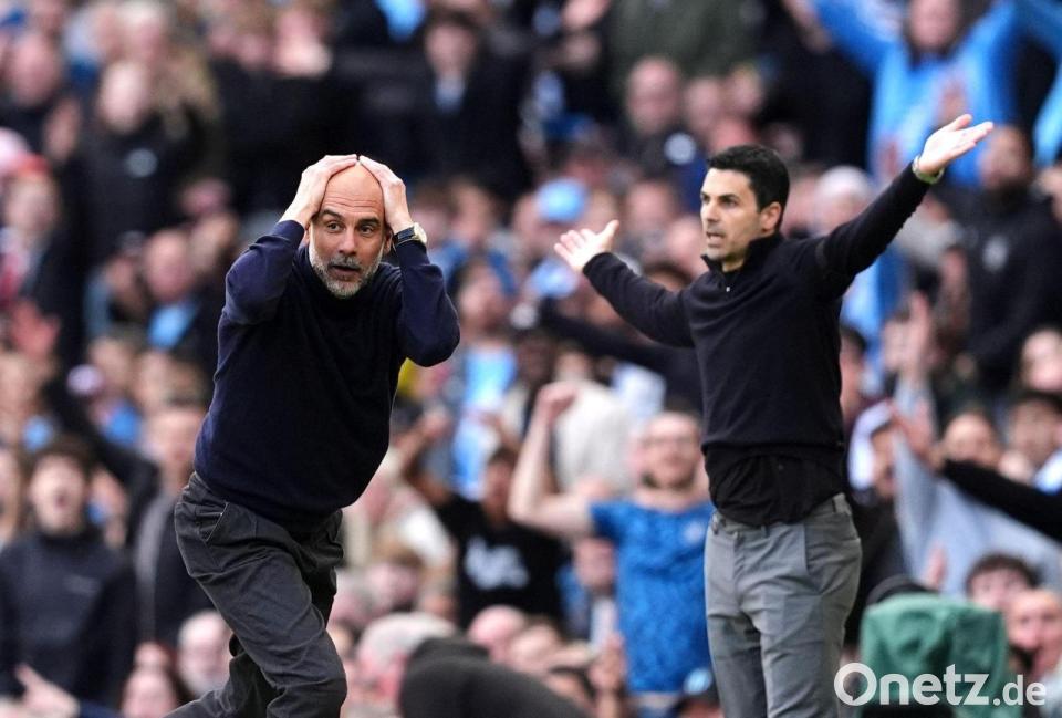 „Vielleicht wird es ein Kampf bis zum Ende“, spekulierte Guardiola. Während der Spanier nach dem hart erkämpften, knappen Sieg dank Toren von Rayan Cherki und Erling Haaland euphorisch wirkte, gab sich sein Landsmann und früherer Co-Trainer Arteta bemüht kämpferisch. „Alles ist noch offen“, sagte er. „Wir wissen, wie sehr wir es wollen, und wir werden nicht aufgeben. Wir greifen auf jeden Fall wieder an.“