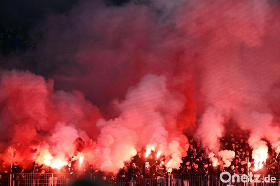 In einer Stellungnahme der Polizei vom Sonntag hieß es, ein Mann sei im Gästebereich wegen versuchten Zutritts ohne gültiges Ticket überprüft worden. Bei dem 24-Jährigen seien bei einer oberflächlichen Durchsuchung nach Ausweispapieren im Bereich der Hosentasche verdächtige Gegenstände ertastet worden. Nach Aufforderung, diese hervorzuholen, habe der Mann seine Hose ausgezogen und den Beamten einen Zahnschutz sowie zwei Bandagen übergeben, die er in seiner Unterhose mitgeführt habe.