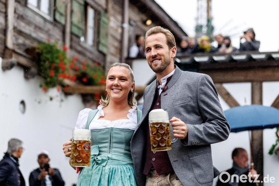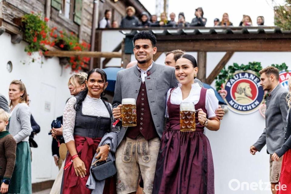 Torjäger Harry Kane und Top-Zugang Luis Díaz posierten im nasskalten München gut gelaunt mit ihren Frauen an der Seite und einer Maß Bier in der Hand für die Fotografenschar. Dann verschwanden die beiden Offensivstars des FC Bayern München schnell ins warme Bierzelt, um ihren Rekordrausch mit einem feuchtfröhlichen Wiesn-Besuch zu feiern.