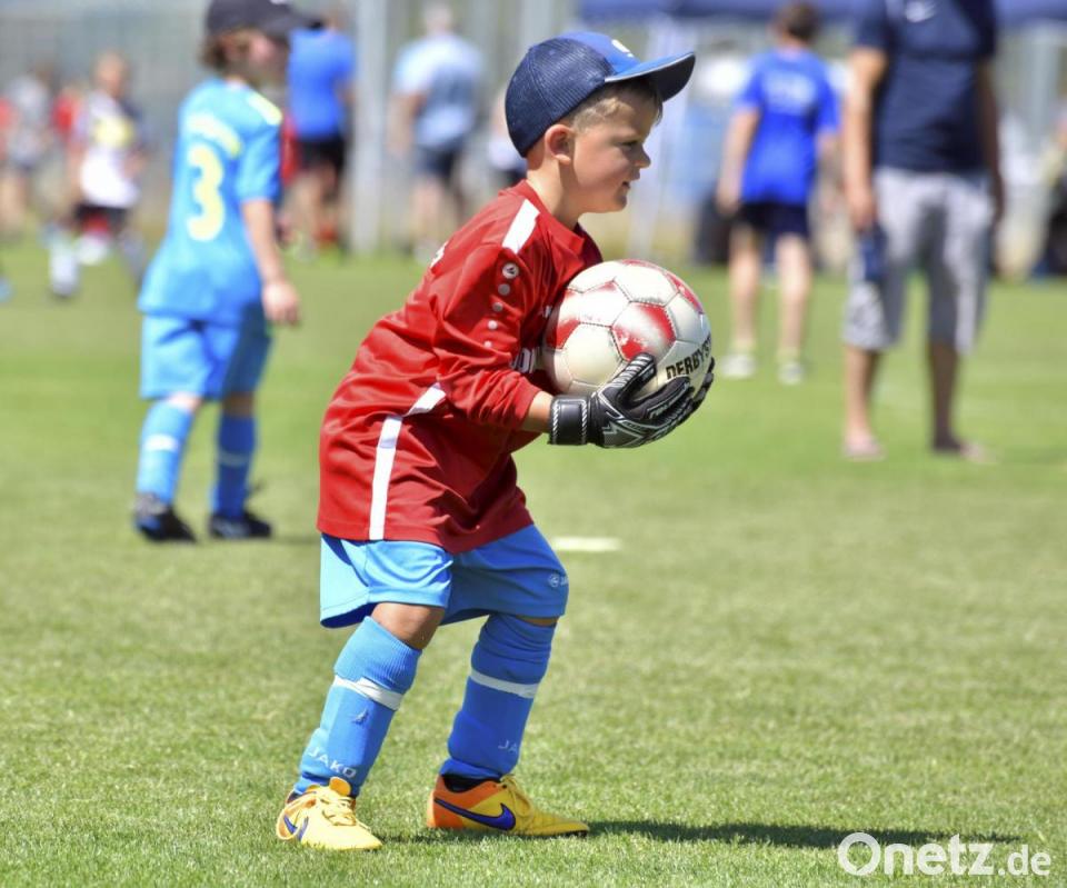 Perfekte Schusshaltung mit Einsatz der Zunge! Szene von den G-Junioren des SV Raigering