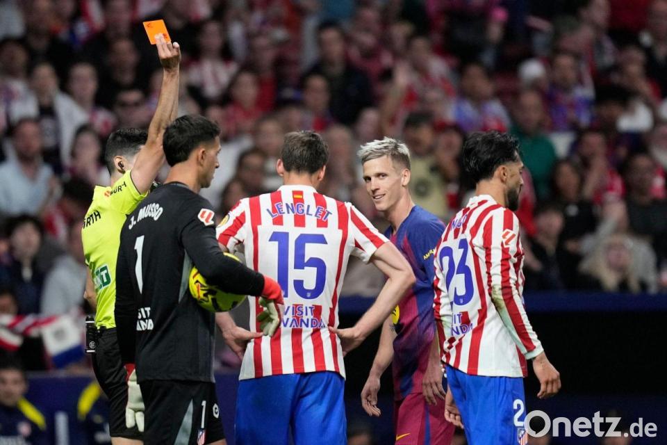 Beim Topspiel am Abend ging der Tabellendritte Atlético durch Giuliano Simeone in Führung (39.), Marcus Rashford (42.) glich wenig später aus. Nicolás González sah nach einem Foul an Barcelona-Star Lamine Yamal nach Videobeweis unmittelbar vor der Pause die Rote Karte. Auf der anderen Seite nahm der Schiedsrichter Rot für Barcelonas Gerard Martin wieder zurück und gab nur Gelb. Barcelona drängte auf den Sieg und hatte Glück, als der Ball nach einer Abwehr von Torwart Juan Musso an Lewandowskis linke Schulter prallte und von dort ins Tor.