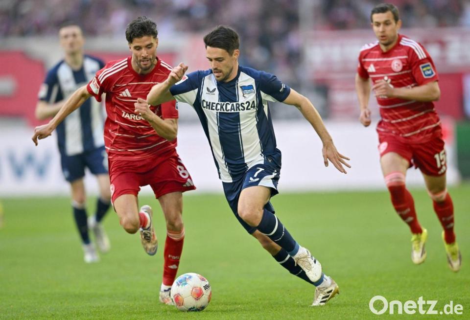 Fabian Reese lässt Hertha BSC im Aufstiegsrennen der 2. Fußball-Bundesliga wieder ein bisschen träumen. Der Kapitän glänzte am Sonntag beim 5:2 (4:1)-Auswärtssieg bei Fortuna Düsseldorf als doppelter Torschütze und als Torvorbereiter. In der Tabelle halten die Berliner mit sieben Punkten Rückstand zu Relegationsplatz drei weiter Kontakt zur Spitzengruppe.